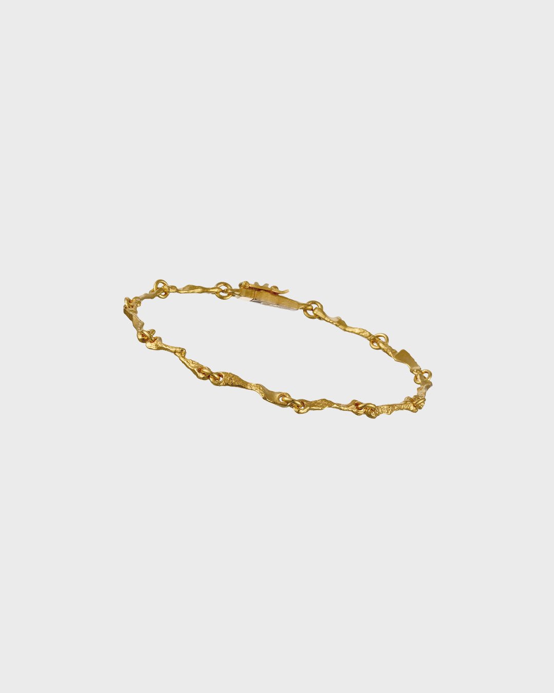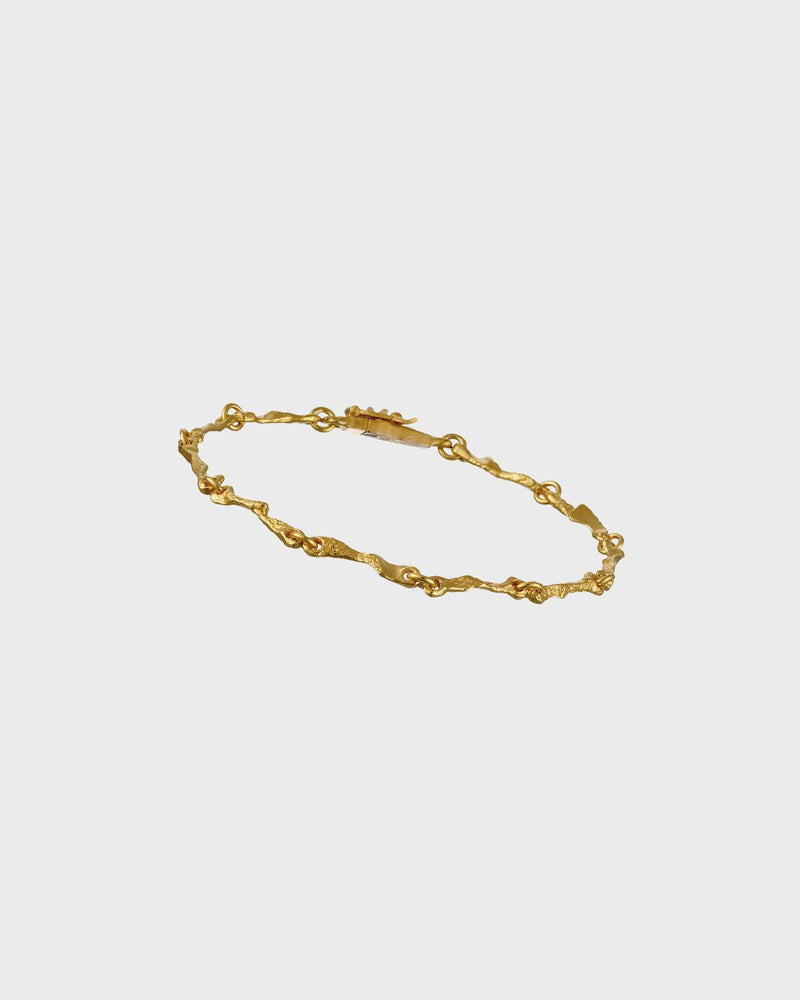 In the Rannio collection, Björn Weckström's source of inspiration has been the rut trampled by reindeer in the wilderness, which is called a rannio in Lapland. The jagged surfaces and satin-like matte shine of the parts cast from 14 carat gold imitate the warm glow of gold nuggets shaped by nature. The case lock of the bracelet blends skillfully into the whole. Discontinued model, available in size 18.5.