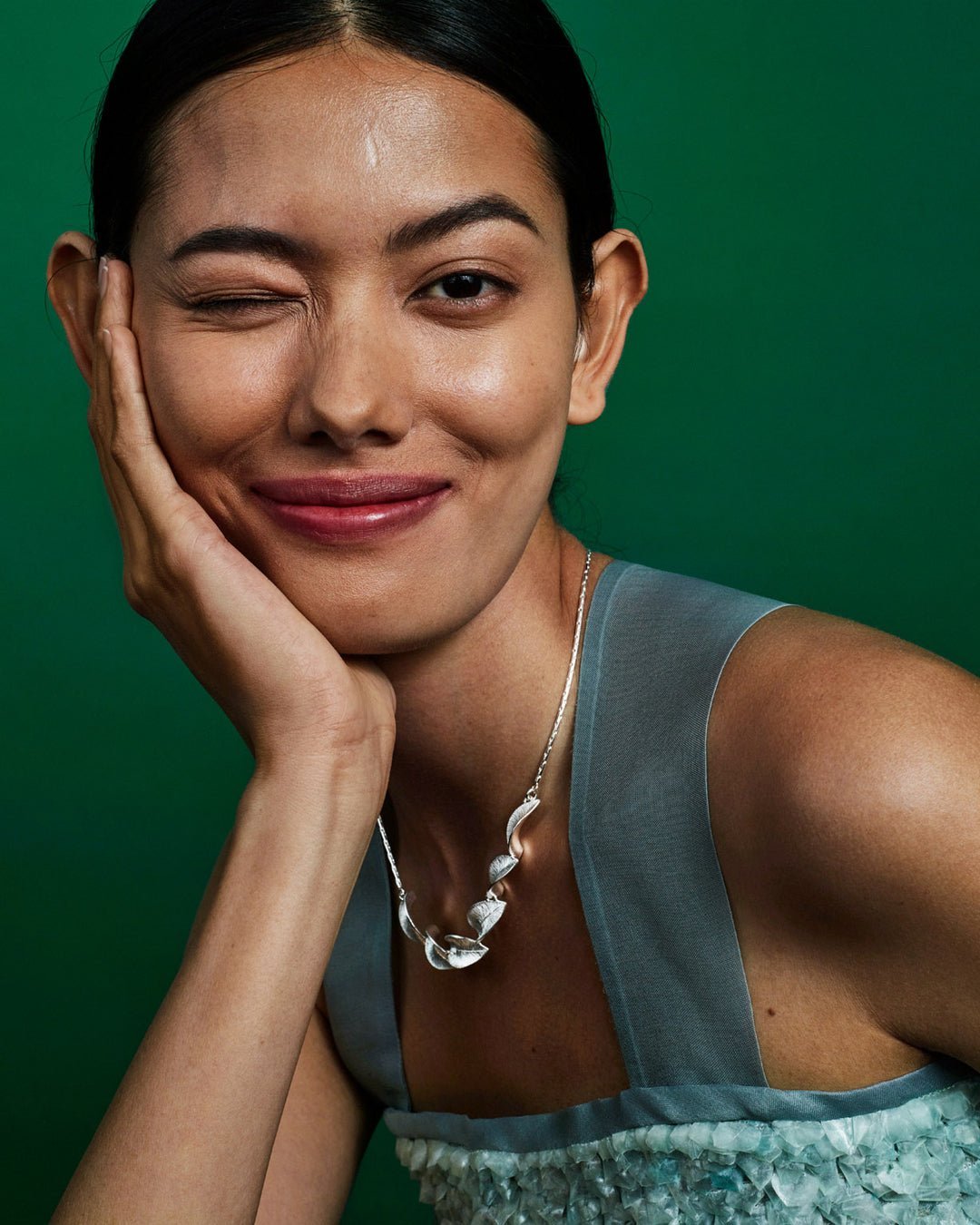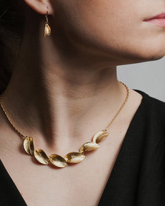 The Snow Flower necklace made of bright bronze glows like gold. This necklace is made in three different lengths, the length of an individual necklace is not adjustable. Also available in silver.