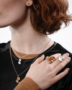 The delicate beauty of midsummer roses blossoms in the sculptural Summer Night Rose silver earrings. Pin fastening. The earrings are not mirror images of each other. Also available in bronze and gold.