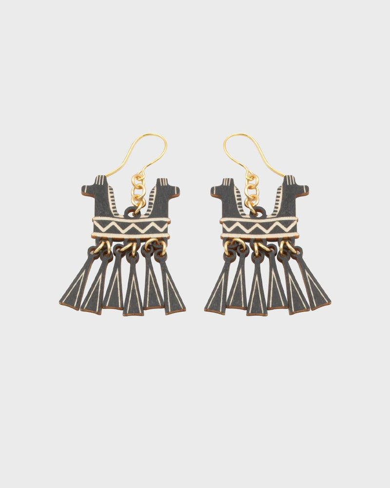 Two-Headed Horse Earrings Black Plywood
