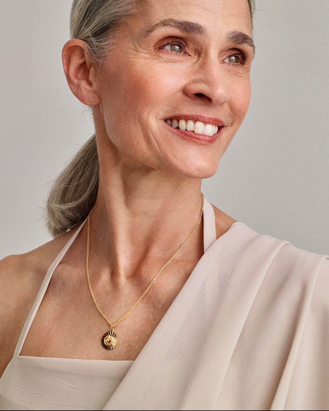 Klassikon uusi tulkinta. Kultainen Aurinkoleijona-amuletti ilahduttaa kaikkia pienten, keveiden korujen ystäviä, joita puhuttelevat kiehtovat yksityiskohdat, vahvat tarinat ja kaukaa menneisyydestä kumpuavat uskomukset. Kultainen Aurinkoleijona-amuletti on hieman pienempi kuin vastaavat pronssi- ja hopea-amuletit. Kultaisen amuletin taustapuoli on ontto (kuvio näkyy negatiivina), joten koru ei sovellu kaiverrettavaksi. Hinta ilman ketjua. Ketjuksi suosittelemme kultaista ankkuriketjua tai siroa ovaalipapuketjua.
