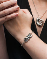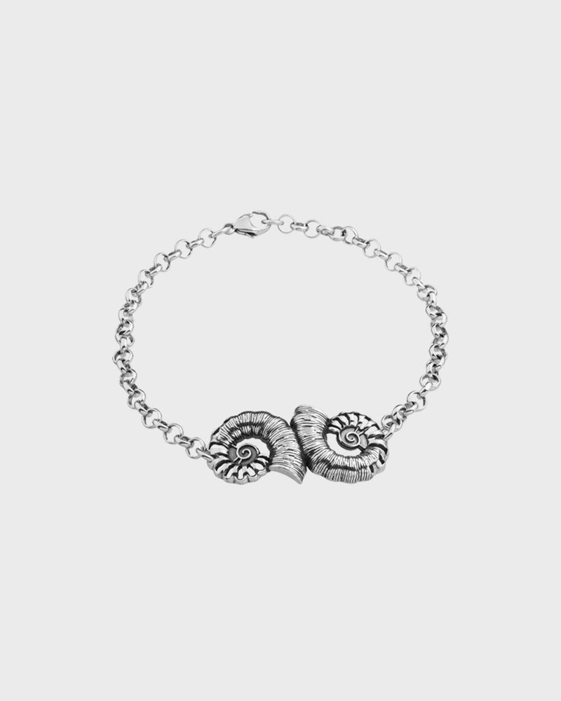 Hopeinen Nightwish-yhtyeen kanssa yhteistyössä suunniteltu rannekoru on saanut muotonsa fossiilisesta merieläimestä Ammoniitista.