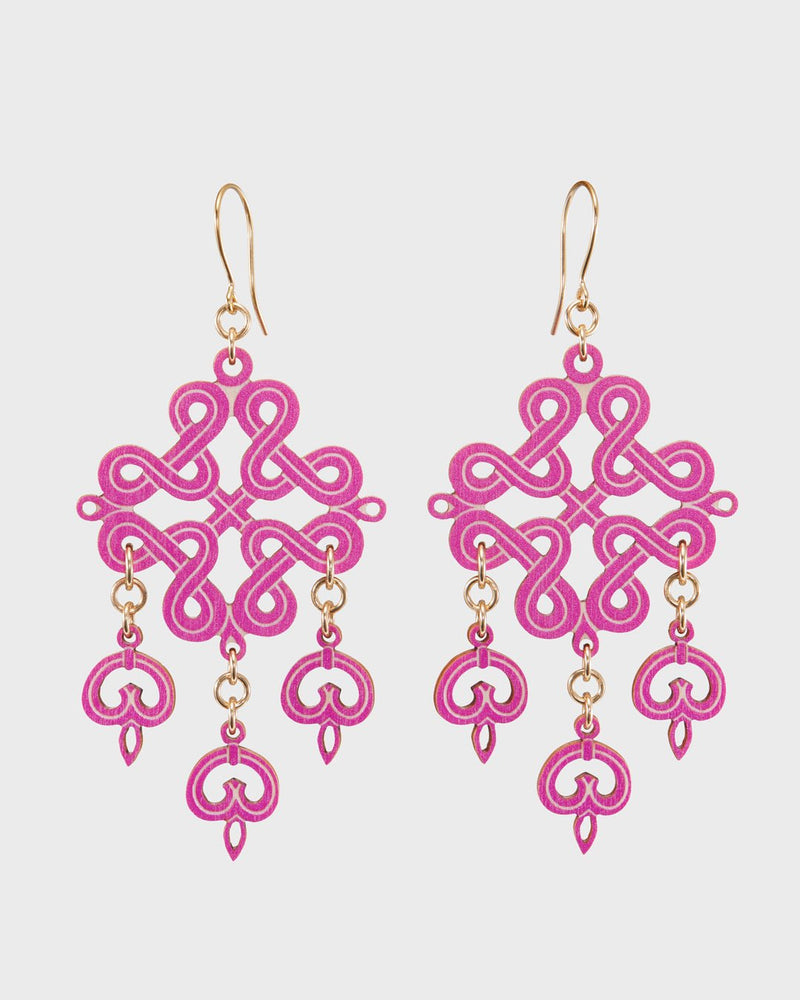 Karjalainen nauhapunos -vanerikorvakorut pinkki