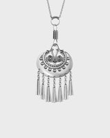 Germund Paaerin 1940-luvulla suunnittelema Kuutar on klassikkokoruistamme se kaikkein ikonisin. Viikinkihenkisen hopeariipuksen spiraalit symboloivat elämän kiertokulkua, ja pienet helat karkottavat helinällään pahoja henkiä. Ketjun pituus 70 cm, ei lukkoa. Saatavissa myös pronssisena.