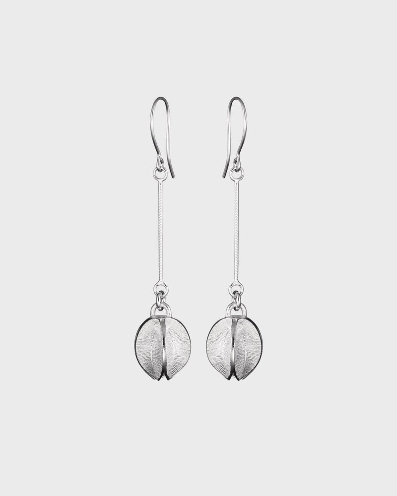 Lumikukka on suomalaisen korumuotoilun moderni klassikko. Hopeasta valetun pallomaisen Lumikukan pinta hohtaa himmeän huurteisena. Tässä versiossa Lumikukka keinahtelee kepeästi hopeisen ketjun päässä. Hopeiset avokoukut. Korvakorut saatavissa myös pronssisina.