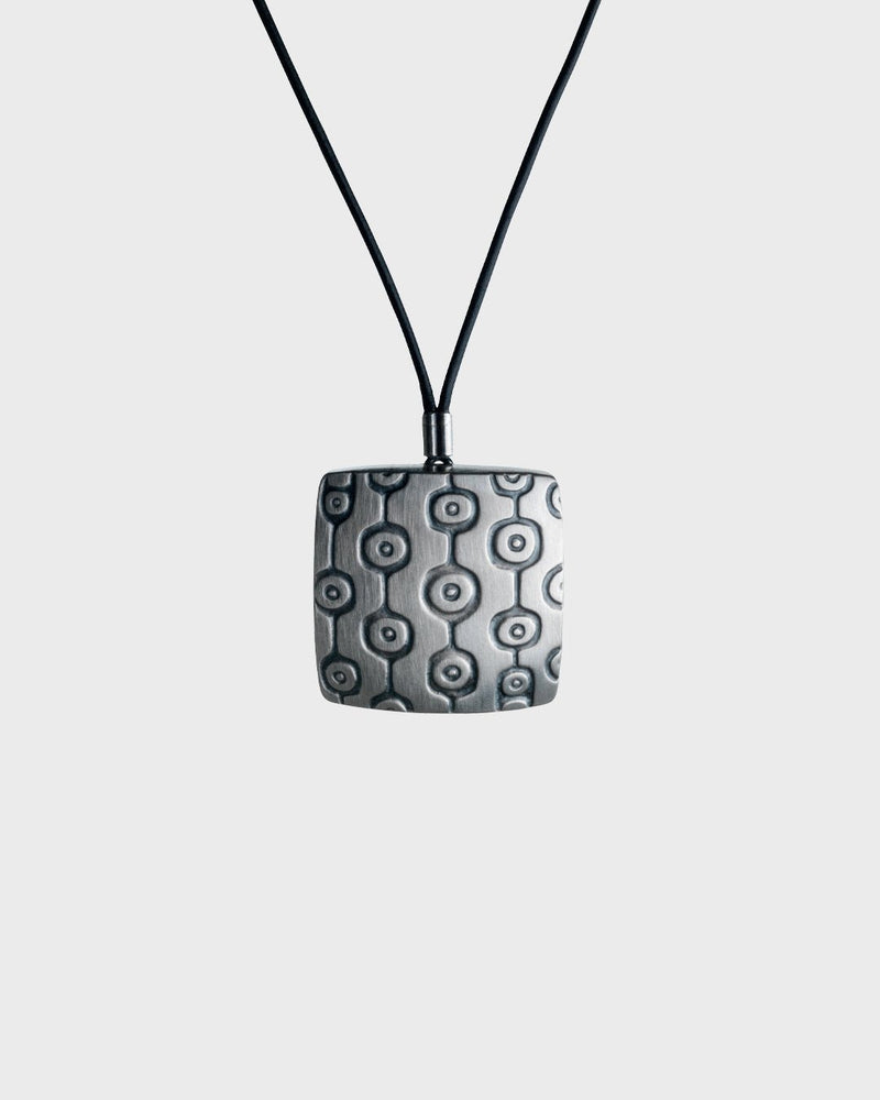Näyttävä hopeinen riipus, joka on saanut inspiraationsa Australian alkuperäiskansojen taiteesta.