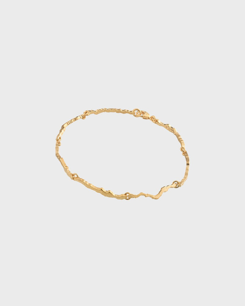 Pimenevien syysiltojen hiljaisuus ja kuun välkehtivä heijastus veden pinnalla ovat innoittaneet Taru Harmaala Chaloffia Kuutamoinen-kokoelman suunnittelussa. 14 karaatin kullasta tehty siro rannekoru on saatavissa kahdessa pituudessa, pituus ei ole säädettävissä. Papukaijalukko.