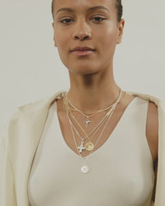 Hopeinen Osmansolmu-amuletti ilahduttaa kaikkia pienten, keveiden korujen ystäviä, joita puhuttelevat kiehtovat yksityiskohdat, vahvat tarinat ja kaukaa menneisyydestä kumpuavat uskomukset. Käytä pitkänä, lyhyenä tai jotain siltä väliltä, kenties kahta tai kolmea Amuletti-riipusta samanaikaisesti. Helan halkaisija 16 mm. Ketjussa säädettävä pituus 40/45/50 cm. Korun mukana toimitetaan myös jatkopala, jolla ketjusta voi tehdä 55- tai 60-senttisen. Ketjussa ja jatkopalassa jousirengaslukko. Riipus on saatavilla myös pronssisena.