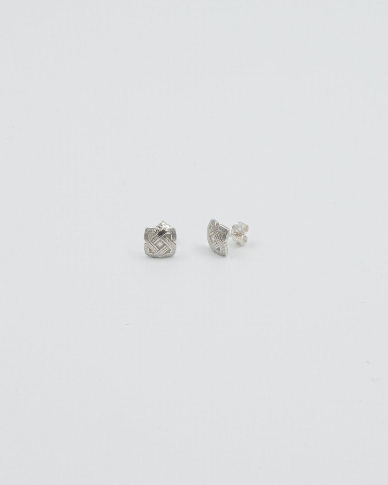 Pienessä nelikulmaisessa hopeakorvakorussa on onnea tuova osmansolmu. Tappikiinnitys.