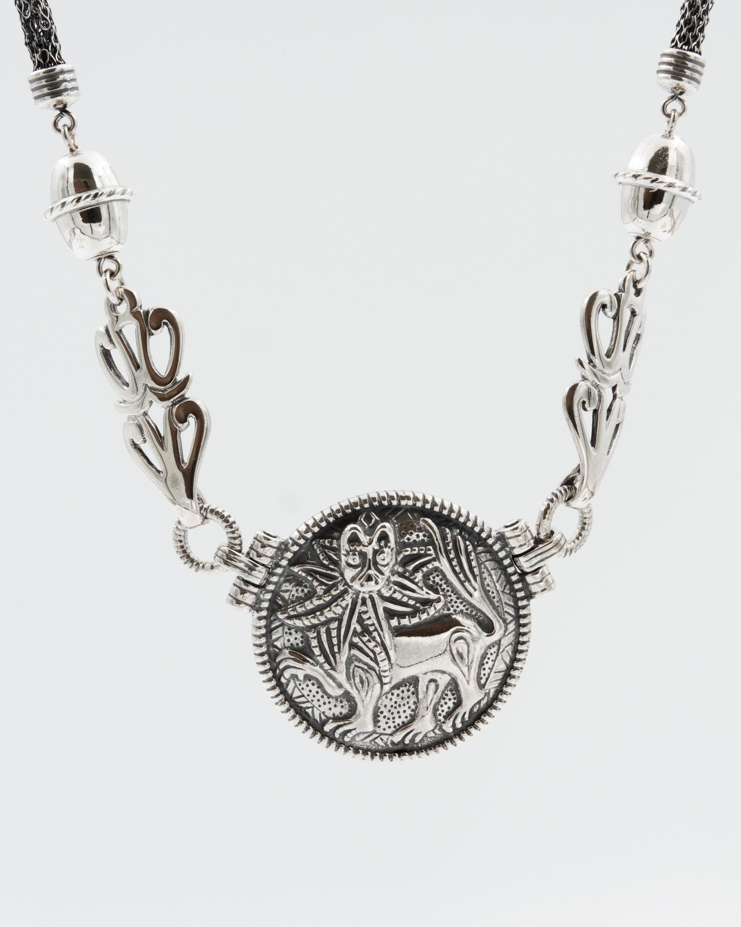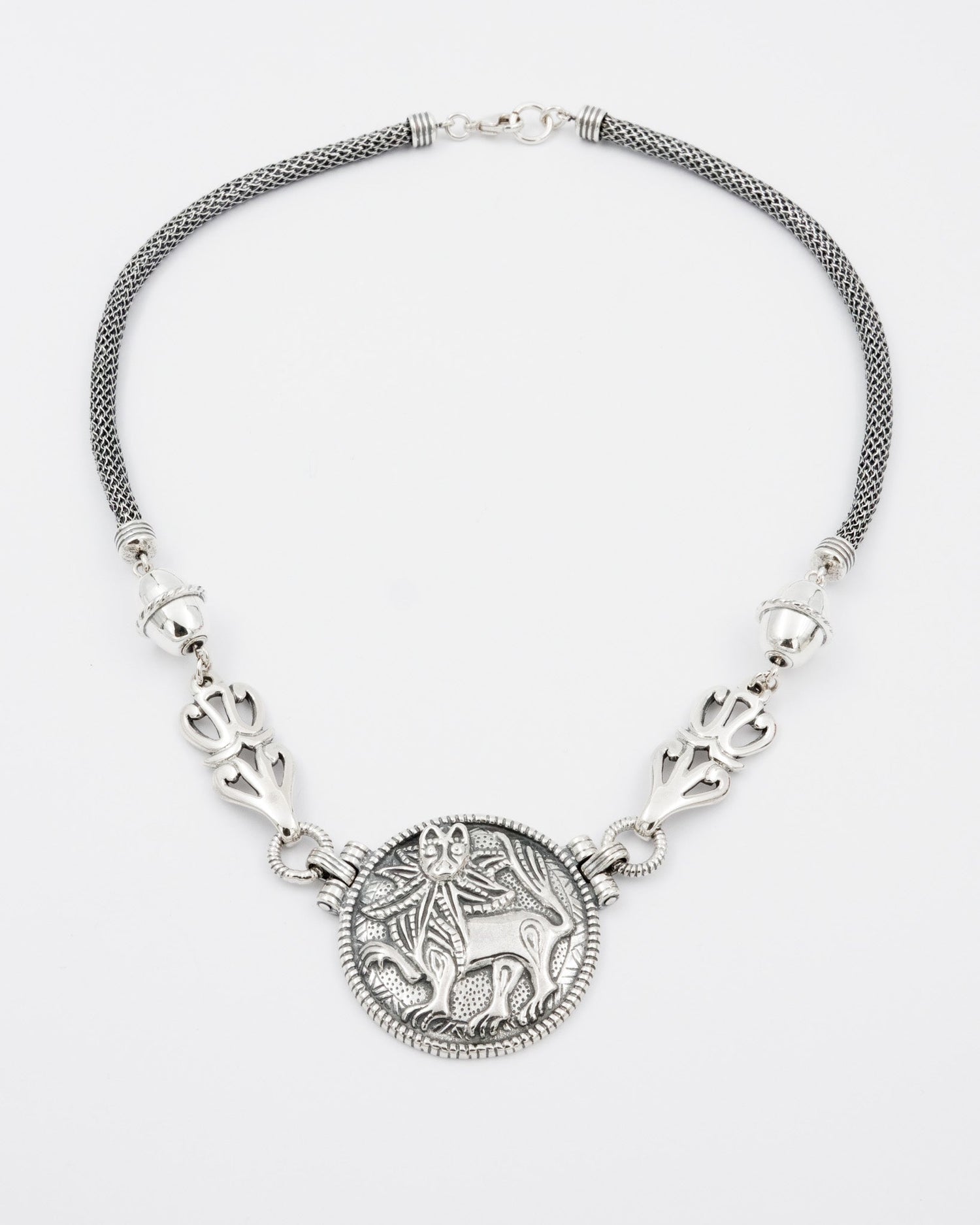Pidetty Aurinkoleijona-kaulakoru iso 45 cm hopea
