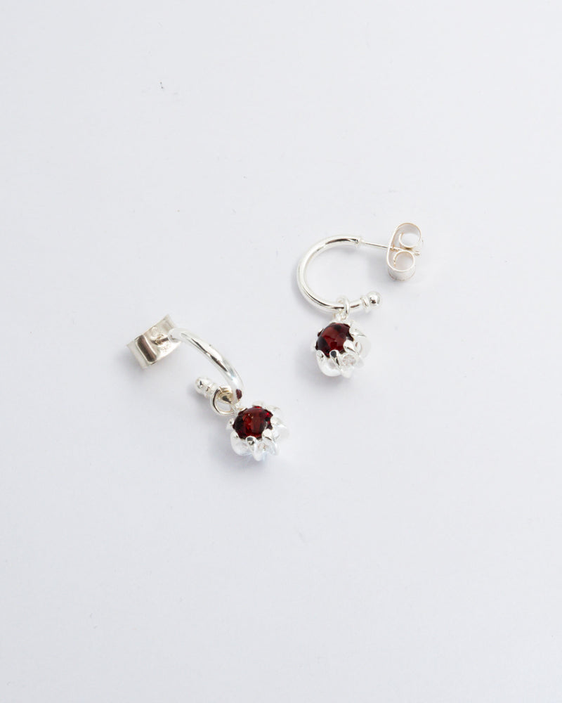 Pidetty Carmen-korvakorut pieni hopea granaatti