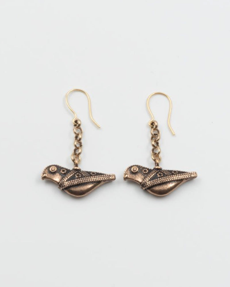 Hattulan linnun esikuvana on ollut filigraanikoristeinen hopealintu, joka on löydetty Hattulan Luurilasta. Korusta on ollut Kalevala Korun mallistossa vuosikymmenien saatossa erilaisia ja -kokoisia versioita, jalallisia ja jalattomia. Tämä pieni jalaton versio, joka tuli mallistoon 1960-luvulla, on esikuvalleen uskollisin. Pullea valettu lintu on kuvioitu molemmin puolin. Linnun leveys 30 mm. Kullatut hopeakoukut.