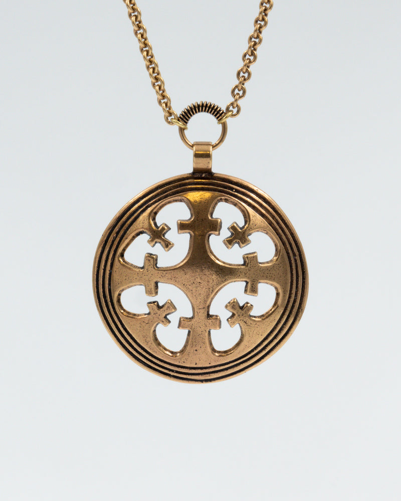 Massiivisen riipuksen viikinkiaikainen esikuva on löydetty Hauholta. Kalevala Korun mallistoon koru on tullut 1960-luvulla. Riipuksen leveys 56 mm, korkeus riipuslenkkeineen 74 mm. Ankkuriketju 70 cm, ei lukkoa.