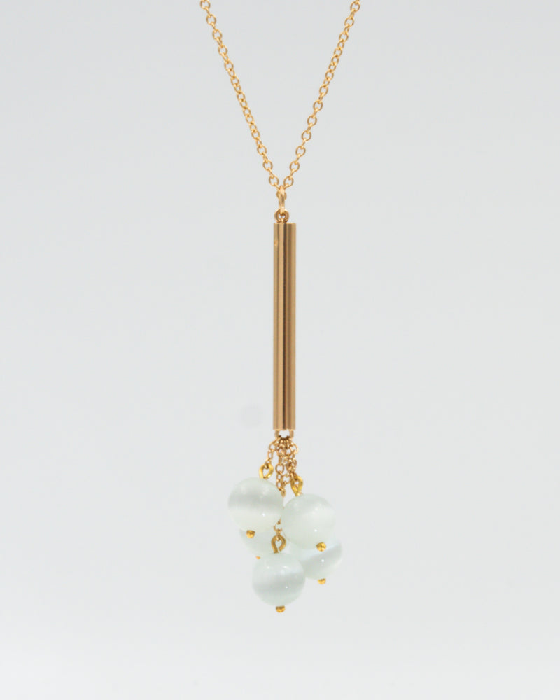 Kultaseppä Arja Saarnion 2010-luvulla suunnittelemassa Jive-riipuksessa helisee viisi cat's eye -lasipalloa. Ankkuriketjussa säädettävä pituus 80/90 cm, jousirengaslukko.