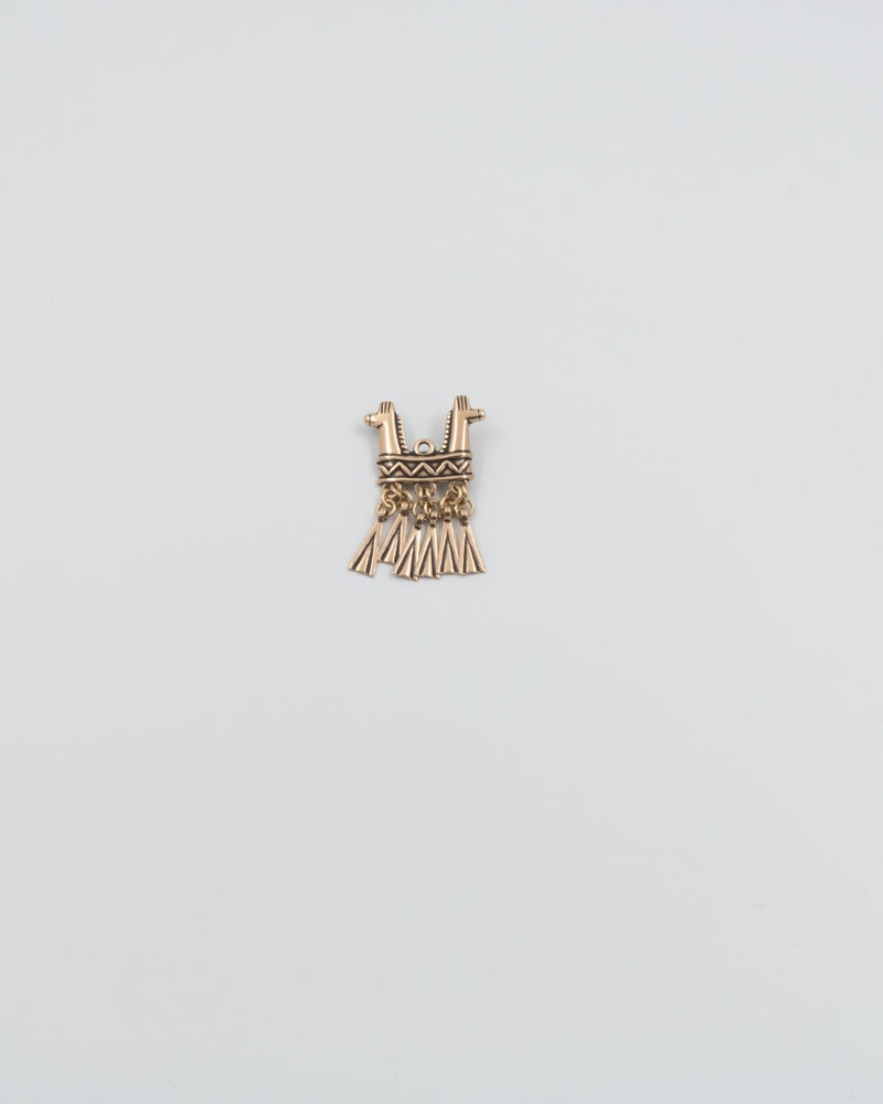 Kaksipäinen hevonen -rintakoru on tullut Kalevala Korun mallistoon 1950-luvulla. Korun esikuvana ovat olleet pronssiset helisevin kello- tai räpyläheloin varustetut eläinriipukset, joita itäsuomalaiset ja karjalaiset naiset käyttivät ristiretkiajalla osana juhlapukujensa näyttävää korustoa. Rintakorun leveys 29 mm, korkeus 45 mm.