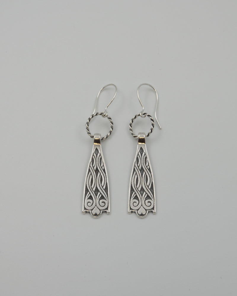 Korvakorujen esikuvana on ollut Kaukolan Kekomäestä löydetty pronssinen hihnanjakaja, joka on peräisin Karjalan ristiretkien ajalta. Leveys 11 mm, korkeus koukkuineen 46 mm.