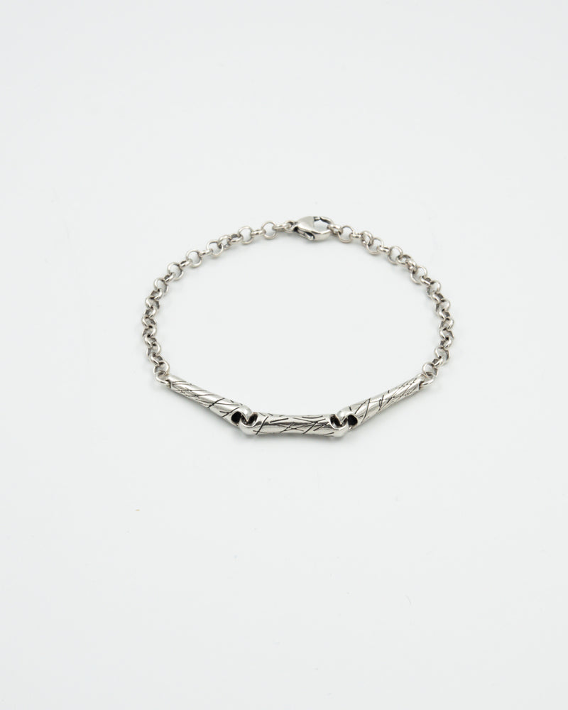 Kova luu -rannekorussa on rehtiä ja reipasta äijäenergiaa. Rannekorussa on säädettävä pituus, ja se sopii sekä miehille että naisille. Kaikille, jotka arvostavat koruissaan rouheaa, maskuliinista muotokieltä. Papukaijalukko. Säädettävä pituus, max. 22 cm.