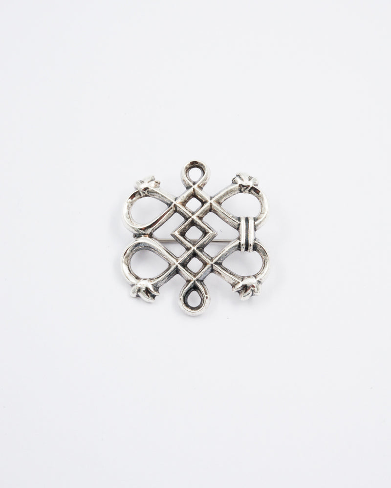 Pienen rintakorun esikuvana ollut pronssisolki on löydetty Liedon Haimionmäestä. Leveys ja korkeus noin 30 mm.