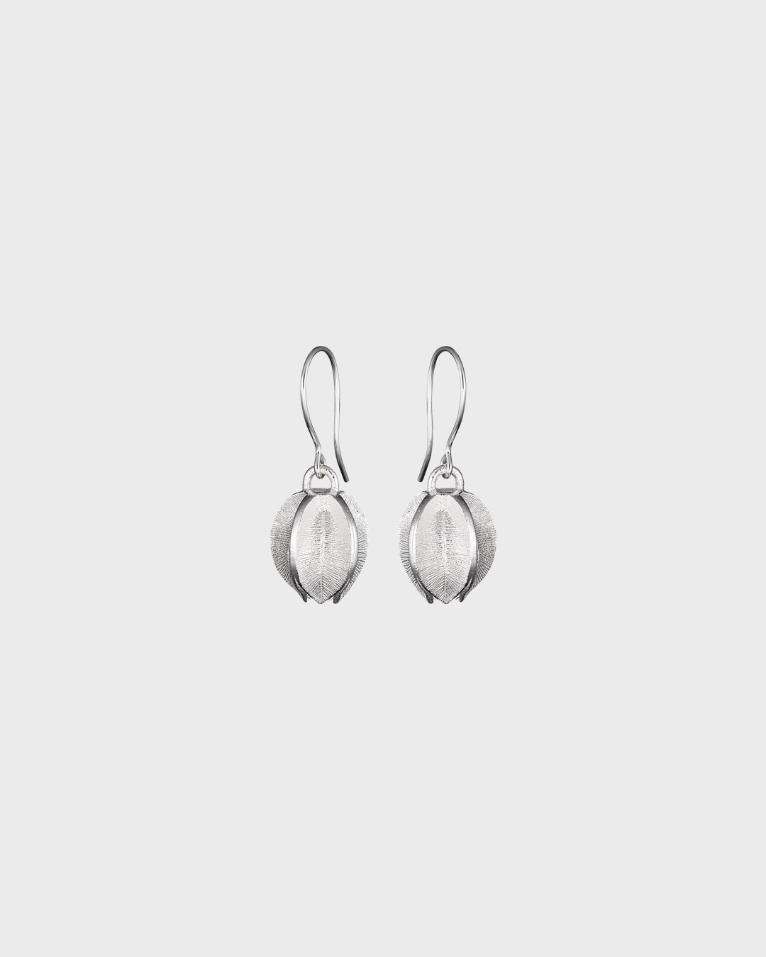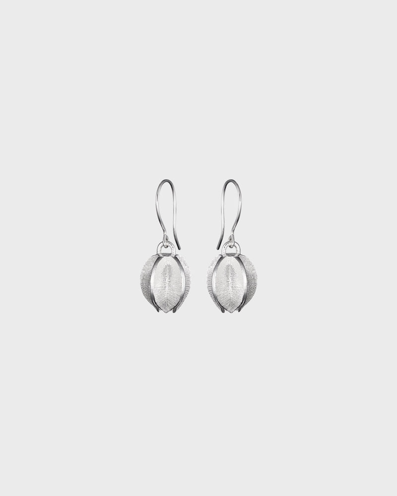 Marja Sunan suunnittelema Lumikukka on suomalaisen korumuotoilun moderni klassikko. Hopeasta valetun pallomaisen Lumikukan pinta hohtaa himmeän huurteisena. Hopeiset avokoukut. Kukkahelan leveys 13 mm.