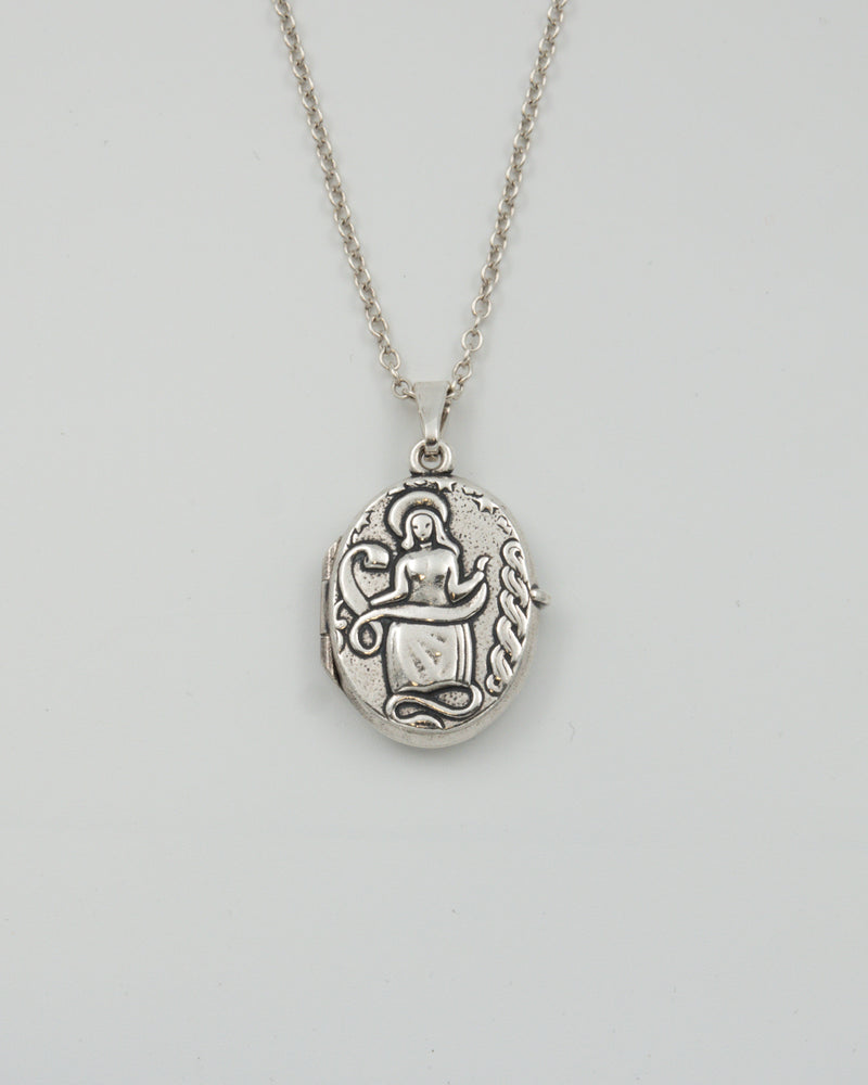 Madonna-medaljongin suunnitteli 1940-luvulla taiteilija Germund Paaer (1881-1950). Korun alkuperäinen nimi oli Pohjan neito. Saranallisessa medaljongissa on sama kuva-aihe kummallakin puolella. Ankkuriketju 70 cm, jousirengaslukko.