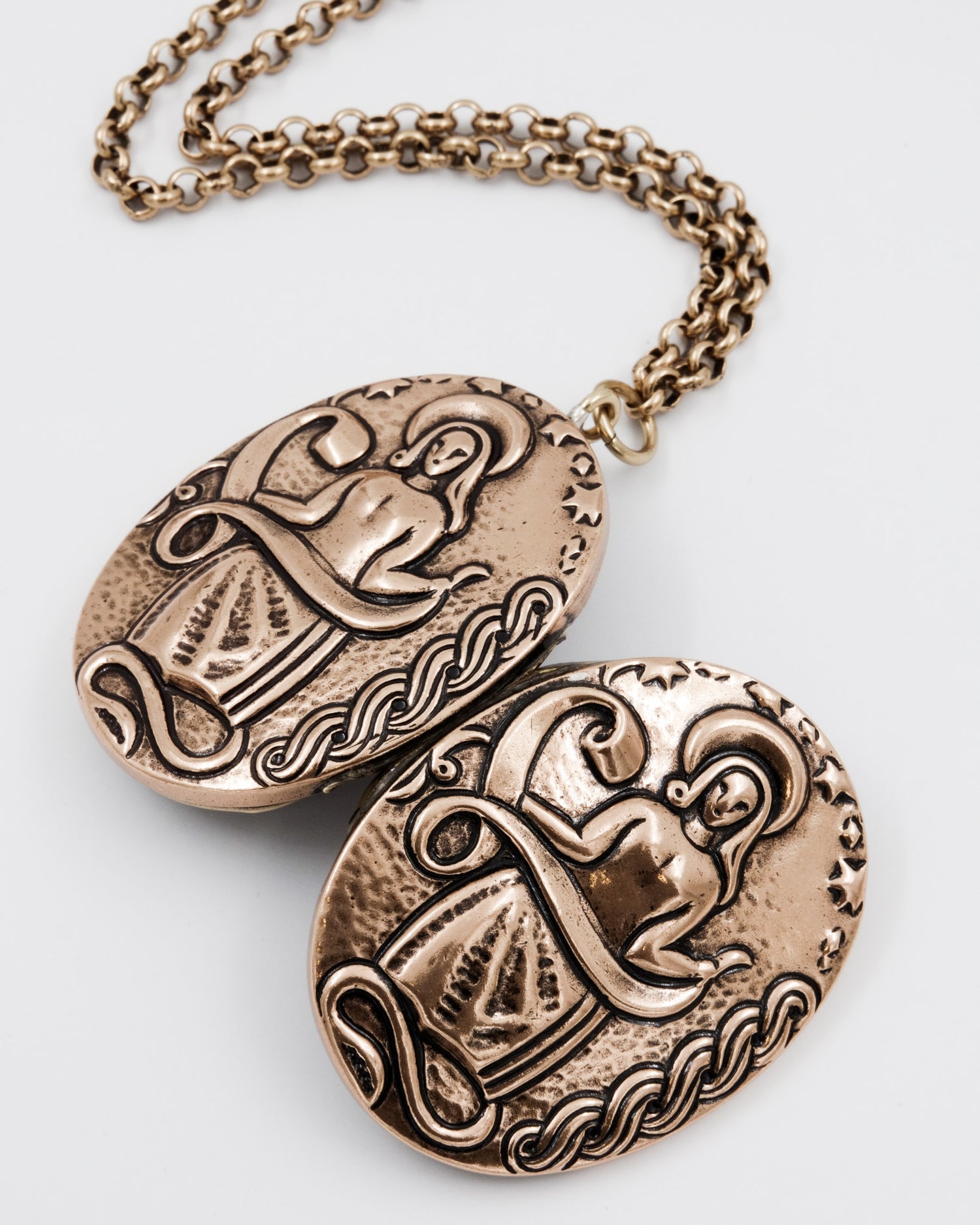 Madonna-medaljongin suunnitteli 1940-luvulla taiteilija Germund Paaer (1881-1950). Korun alkuperäinen nimi oli Pohjan neito. Saranallisessa medaljongissa on sama kuva-aihe kummallakin puolella. Medaljongin leveys 42 mm, korkeus 63 mm. Papuketju 70 cm, ei lukkoa.