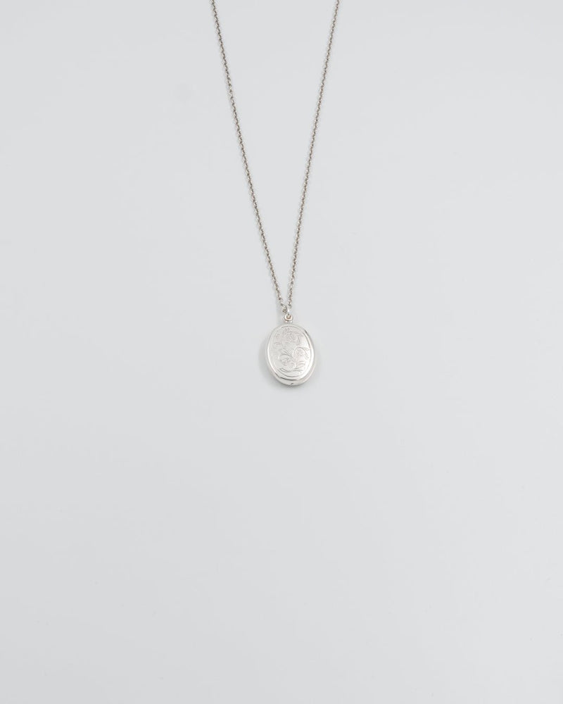 Kukkakuvioisen hopeamedaljongin esikuva on Tornionjokilaaksosta 1800-luvulta. Leveys 19 mm, korkeus riipuslenkkeineen 35 mm. Kuvioitu molemmin puolin. Ankkuriketju 60 cm, jousirengaslukko.