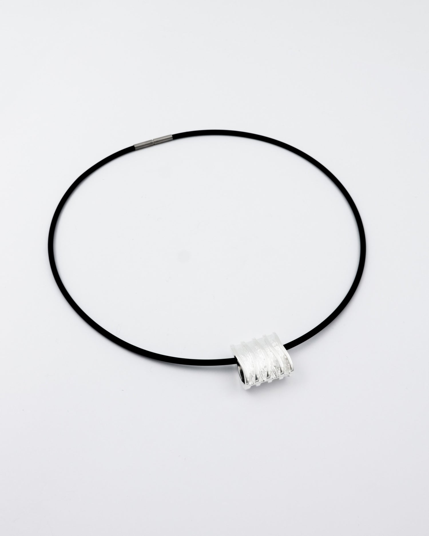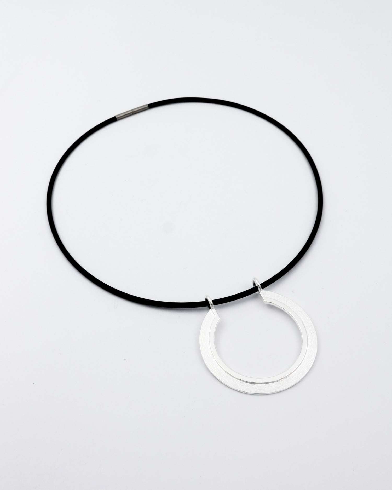 Marja Sunan suunnittelema Opus oli kevään 2009 koru-uutuus. Korun ilmettä voi muunnella käyttämällä korun kahta hopeariipusta yhdessä tai erikseen. Musta silikonipanta 45 cm, bajonettilukko. Rengasriipuksen leveys 49 mm.