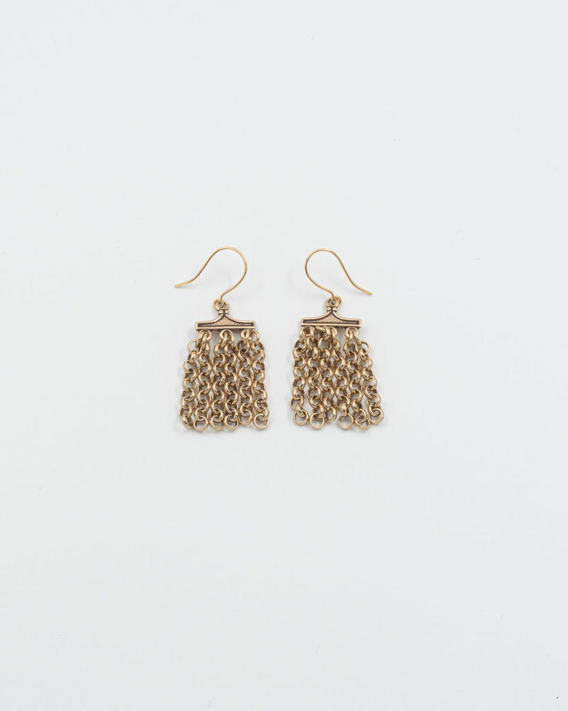 Kepeästi heilahtelevassa korvakorussa on kuusi riviä papuketjua. Korvakorut ovat näyttävät, mutta eivät kuitenkaan raskaat käyttää. Korvakorujen materiaali on oksidoitu pronssi, joka on tummempaa kuin kirkas pronssi. Koukut kullattua hopeaa.