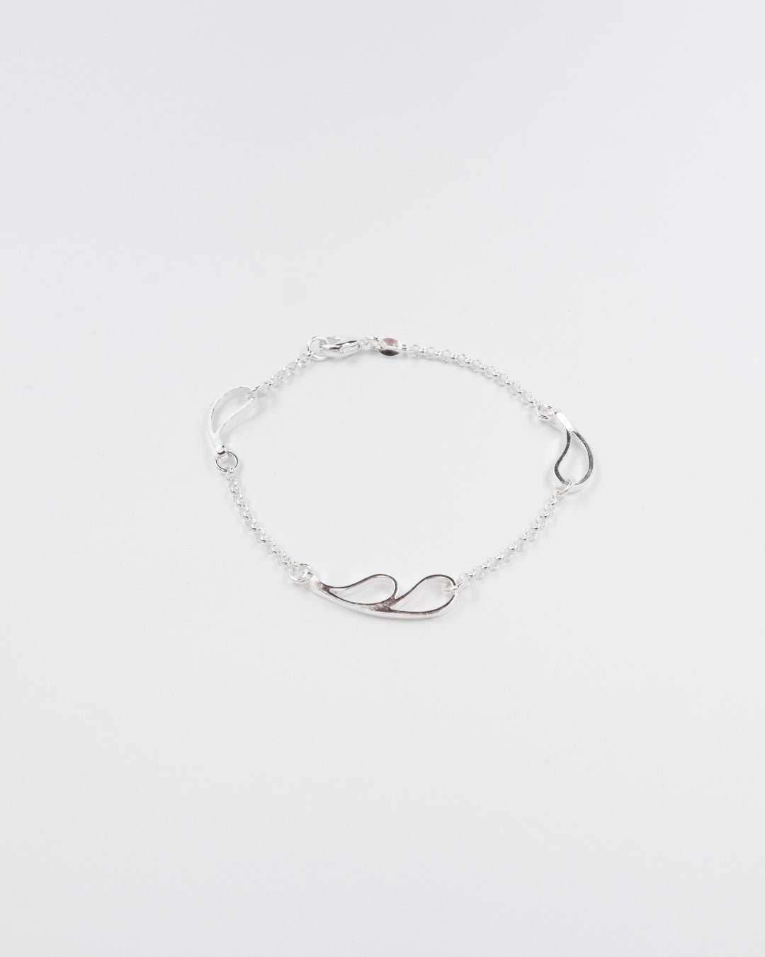 Kirkkaasta hopeasta tehty Pisaroi-korusarja on muotoilija Heli Kauhasen käsialaa. Säädettävä pituus 19,5/17,5 cm. Papukaijalukko.