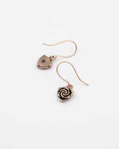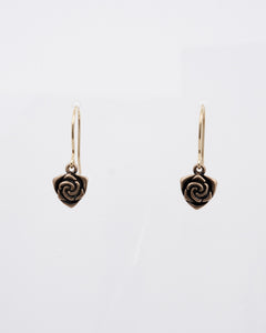 Ruusu-korut suunnitteli kultaseppä Tony Granholm 2000-luvun alussa. Korvakorun leveys 9 mm. Avokoukut kullattua hopeaa.