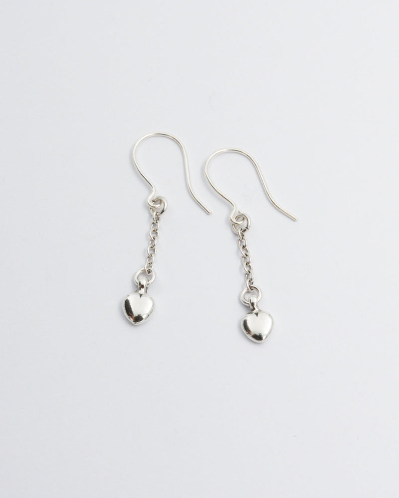 Korvakorun hopeasta valettu pieni sydän on sama, joka heilahtelee klassisessa Sydänsormuksessa. Sydämen leveys 6 mm. Avokoukut.