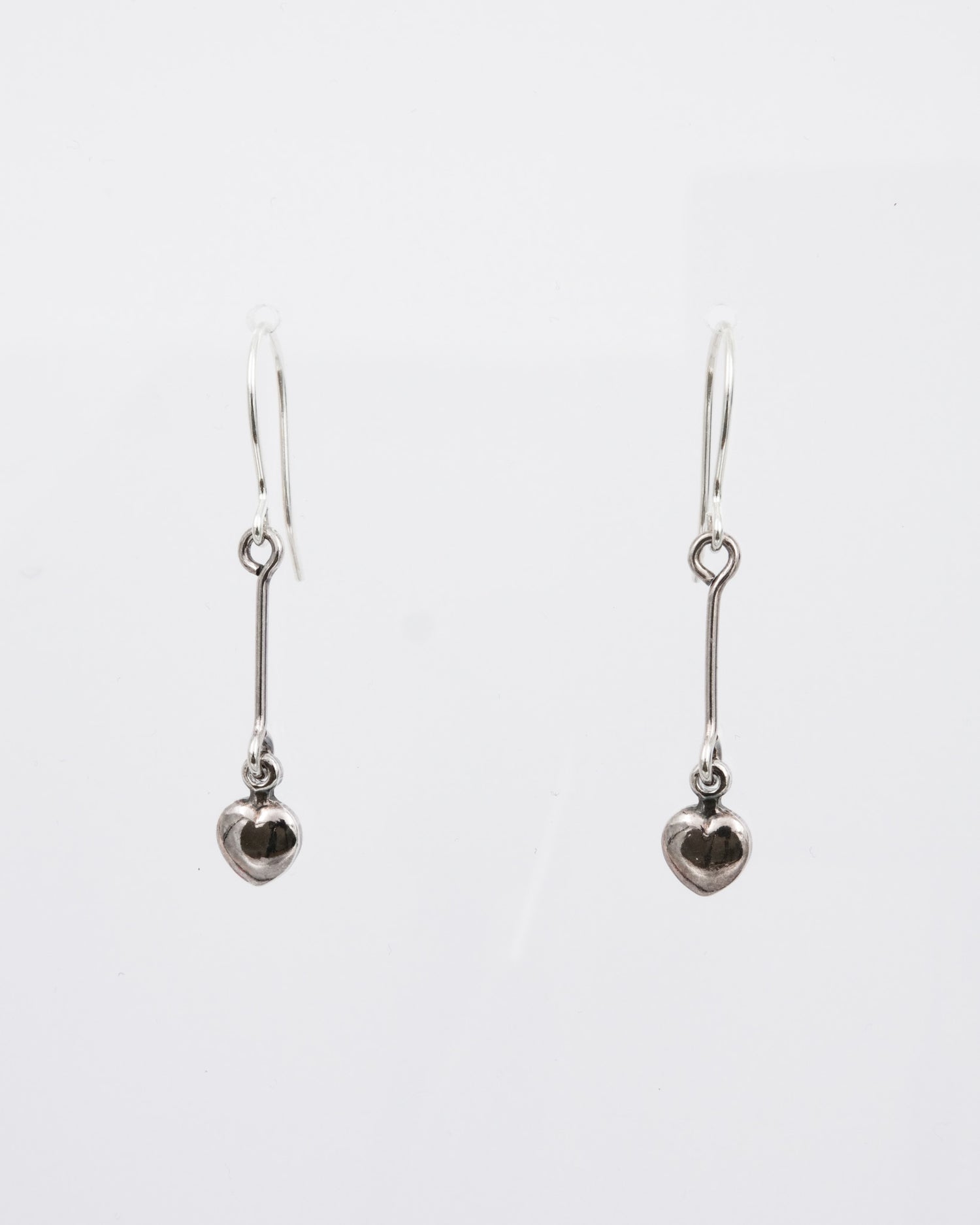 Korvakorun hopeasta valettu pieni sydän on sama, joka heilahtelee klassisessa Sydänsormuksessa. Sydämen leveys 6 mm. Avokoukut.