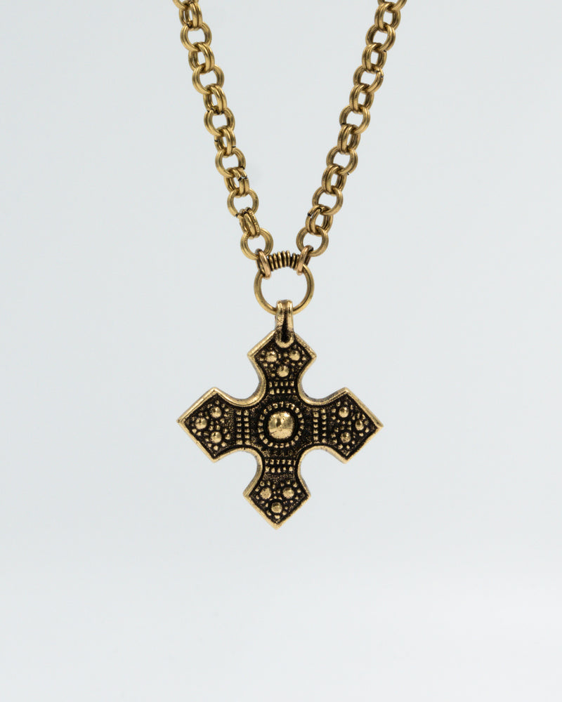Syvärin ristin esikuva on peräisin nuoremmalta rautakaudelta. Kalevala Korun mallistoon koru on tullut 1930-luvun lopulla. Ristin leveys 40 mm, korkeus riipuslenkkeineen 55 mm. Nurja puoli kuvioimaton. Paksu kaksoislenkkiketju 60 cm, ei lukkoa.