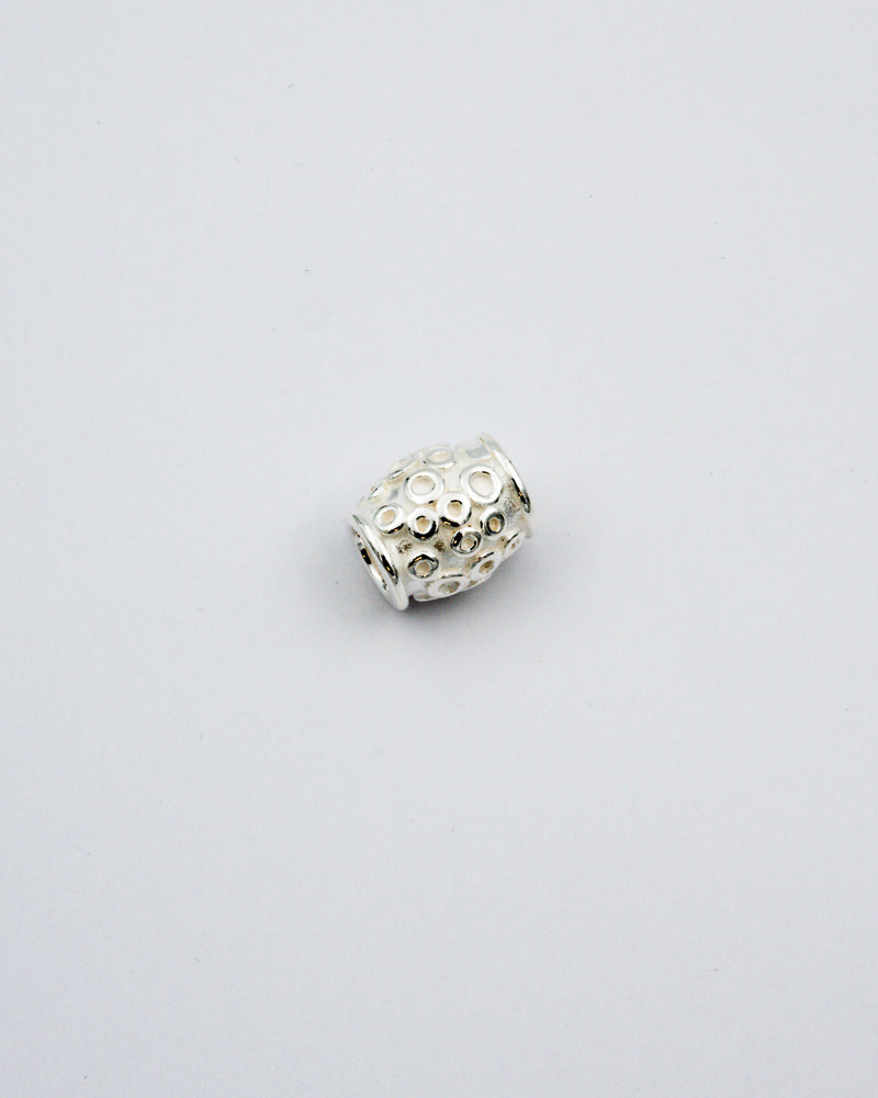 Korun esikuva on rautakauden ja keskiajan taitteesta. Samanlaiset pyöryläkoristeiset helat (pronssiset) kuuluvat Muinais-Karjalan muinaispuvun korustoon, jossa ne on pujotettu olkasolkia ja ketjunjakajia yhdistäviin nahkalenkkeihin. Voit ripustaa tynnyrihelan haluamaasi kaula- tai ranneketjuun.