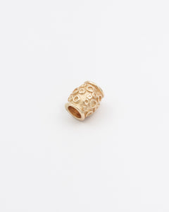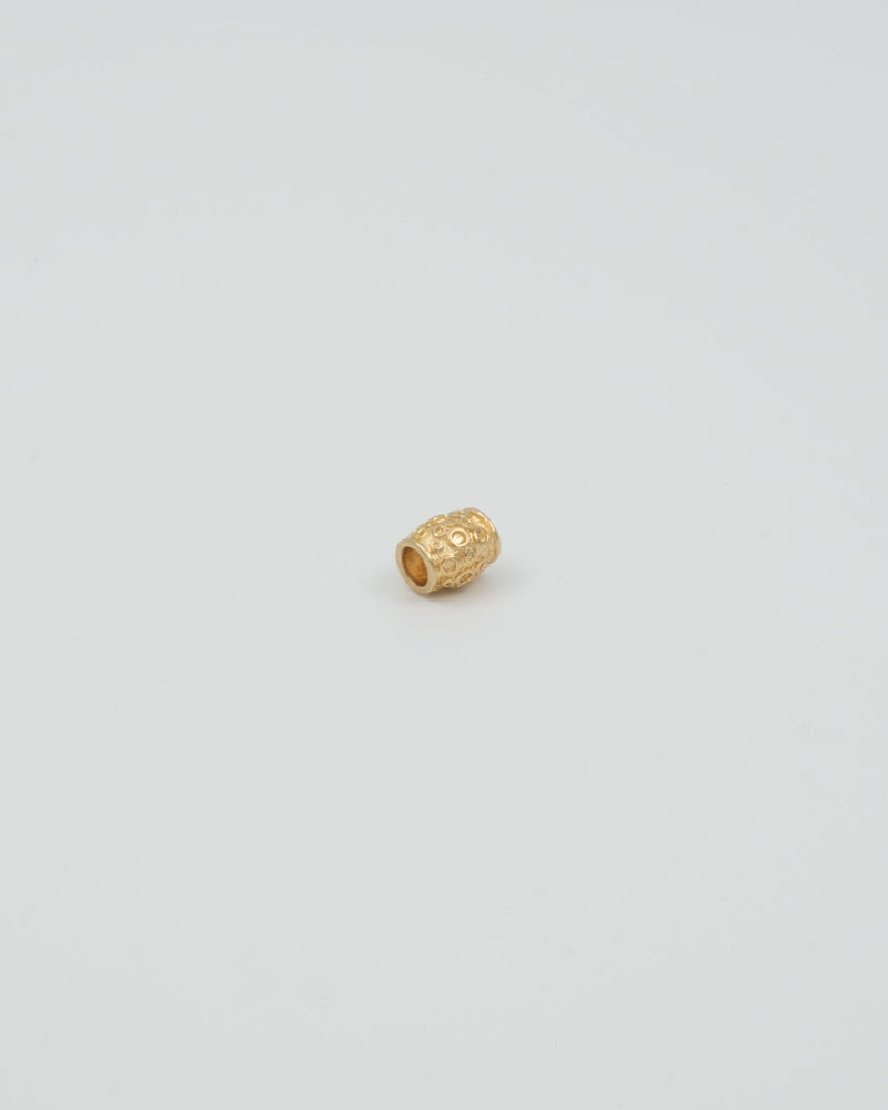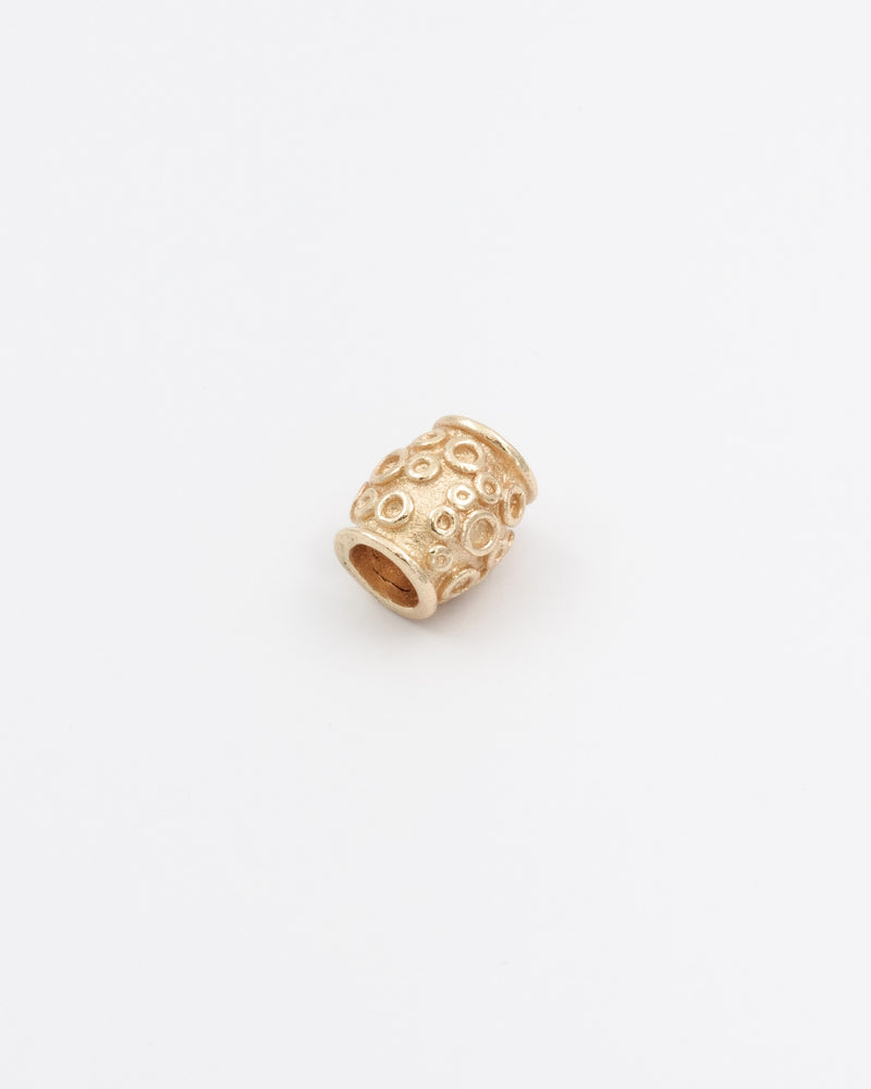 Korun esikuva on rautakauden ja keskiajan taitteesta. Samanlaiset pyöryläkoristeiset pronssihelat kuuluvat Muinais-Karjalan muinaispuvun korustoon, jossa ne on pujotettu olkasolkia ja ketjunjakajia yhdistäviin nahkalenkkeihin. Voit ripustaa kirkkaasta kullanhohtoisesta pronssista valetun tynnyrihelan haluamaasi kaula- tai ranneketjuun.