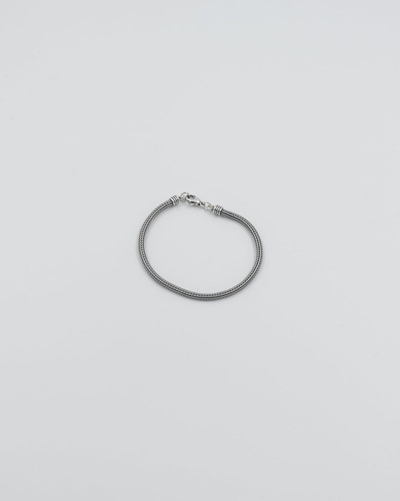 Ohuesta hopealangasta punotussa verkkoketjussa on hopeasta valetut päätydopit ja papukaijalukko. Punoksen paksuus 3 mm.