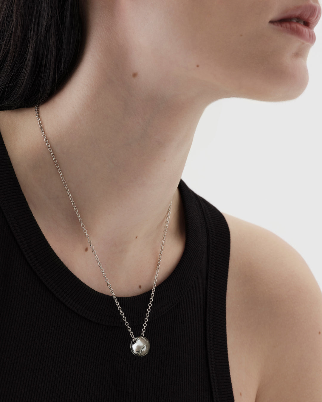 Saranoidussa renkaassa keinahtelevaa onttoa hopeapalloa koristaa Rolf Ekrothille tunnusomainen nostalgiaa huokuva ruusukuvio. Voit pujottaa pallon renkaasta pois, ja ripustaa sen riipukseksi kaulaketjuun. Pallon halkaisija 13 mm, pyöreiden pujotusaukkojen läpimitta 3,5 mm. Renkaan paksuus 3 mm, halkaisija (sisämitta) 20 mm.