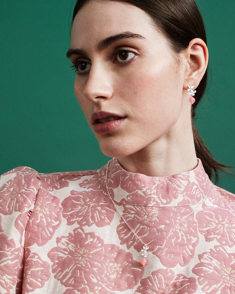 Pienet mattapintaiset hopeasilmut, yhdessä vahvat. Roosa nauha 2021 -korun vaaleanpunaisen lasihelmen on valmistanut käsityönä helsinkiläinen lasitaiteilija Nina Diaz Halonen. Lasihelmien sävyissä voi olla vaihtelua. Ovaalipapuketju, säädettävä pituus 45/50 cm. Jousirengaslukko.