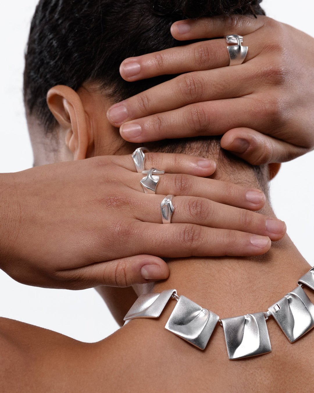 Sung-sormus on kuin pienoisveistos. Sormus ilahduttaa kaikkia Björn Weckströmin muotoilun ja näyttävien hopeasormusten ystäviä.