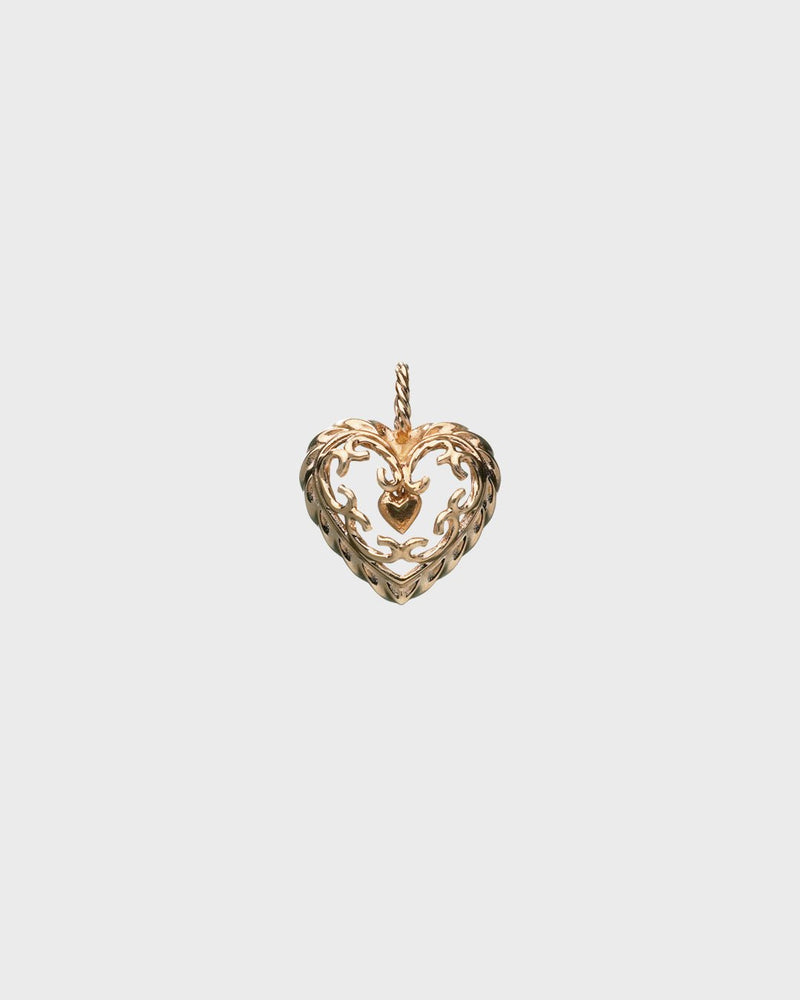 Muinaiskorujen rikas ornamentiikka on tarjonnut innoituksen Tony Granholmin suunnittelemalle Talon sydämelle. 14 karaatin kullasta taiten tehdyssä riipuksessa pieni sydän heilahtelee suuremman sydämen suojassa. Hinta ilman ketjua. Yhdistä ovaalipapuketjuun tai ankkuriketjuun.