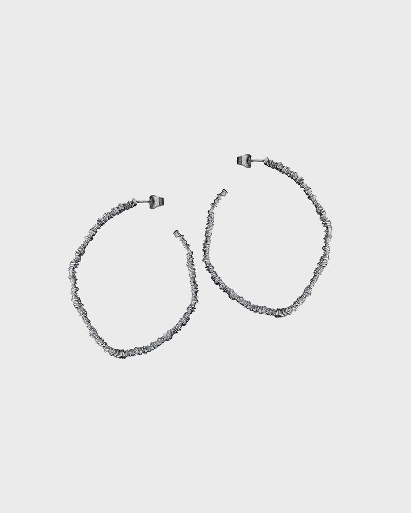 Kalpea kuu ja tumma Pohjolan taivas ovat innoittaneet suunnittelija Martin Bergströmiä The Kuu Collection -kokoelman suunnittelussa. ”Kuu on kiehtonut minua aina – se on mystinen elementti, joka vaikuttaa suuresti arkeemme. Kuu säestää vuorovesien jatkuvaa vaihtelua, vuodenaikoja ja tunnelmia, jotka vaikuttavat elämään maapallolla enemmän kuin ymmärrämme”, Bergström sanoo. Tässä kokoelmassa yhdistyvät orgaaniset muodot ja moderni muotoilu. Yhdistele kokoelman erilaisia korvakoruja ja lopputulos on aina omanlainen. Materiaalina on käytetty tummaa, oksidoitua hopeaa.
