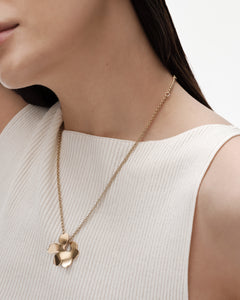 Pieni Unikko-riipus on valmistettu osittain kierrätetystä, kirkkaasta, kullanhohtoisesta pronssista. Korun papuketjussa (leveys 2,5 mm) on papukaijalukko ja säädettävä pituus 42/45/50 cm. Saatavissa myös hopeisena.