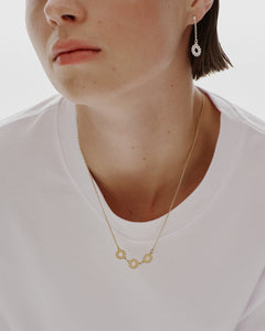 Riippuvassa korvakorussa pieni Valoisa-riipus (samankokoinen kuin sarjan pienin riipus, halkaisija 11 mm, kuvioitu molemmin puolin) keinahtelee kepeästi pallotappiin kiinnitetyn ohuen ovaalipapuketjun päässä. Kirkasta pronssia, pallotappi kullattua hopeaa. Korvakorut saatavissa myös hopeisina. Suositun Valoisa-sarjan on suunnitellut Tiina Arkko.